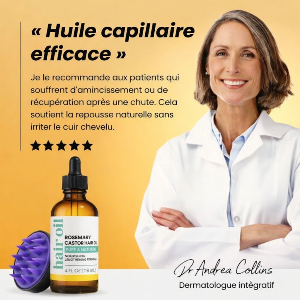 - ⭐⭐⭐⭐⭐ Danielle F – « J’avais déjà testé de l’huile de romarin pure, mais je la trouvais trop agressive. Ce mélange s’applique en douceur, pénètre rapidement et procure une vraie sensation d’apaisement. Après quelques semaines, j’ai vu de petits cheveux repousser près des tempes. Bluffée ! »